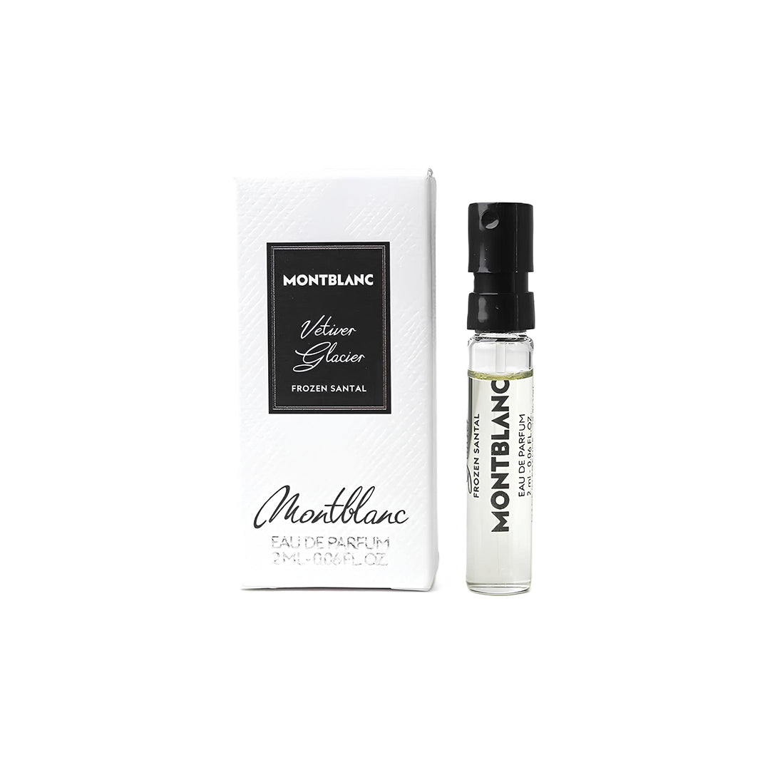 Montblanc Collection Vetiver Glacier Eau de Parfum (EDP) opens with vetiver. The heart reveals juniper, while the fragrance settles into sandalwood.
